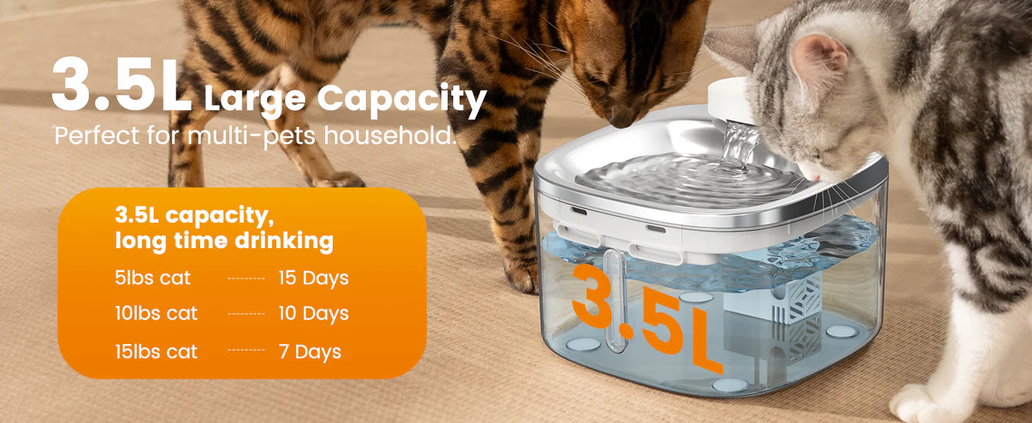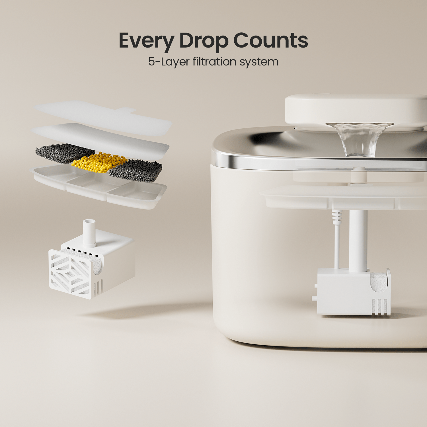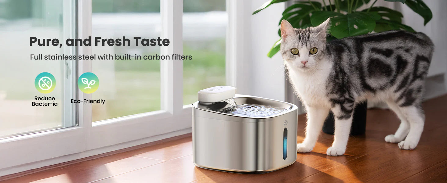 Filters help remove impurities, hair, food particles, and other debris from the water, keeping it clean and safe for your pet. Many filters also have activated charcoal to help reduce odor and improve the taste of the water, which can encourage your pet to drink more.