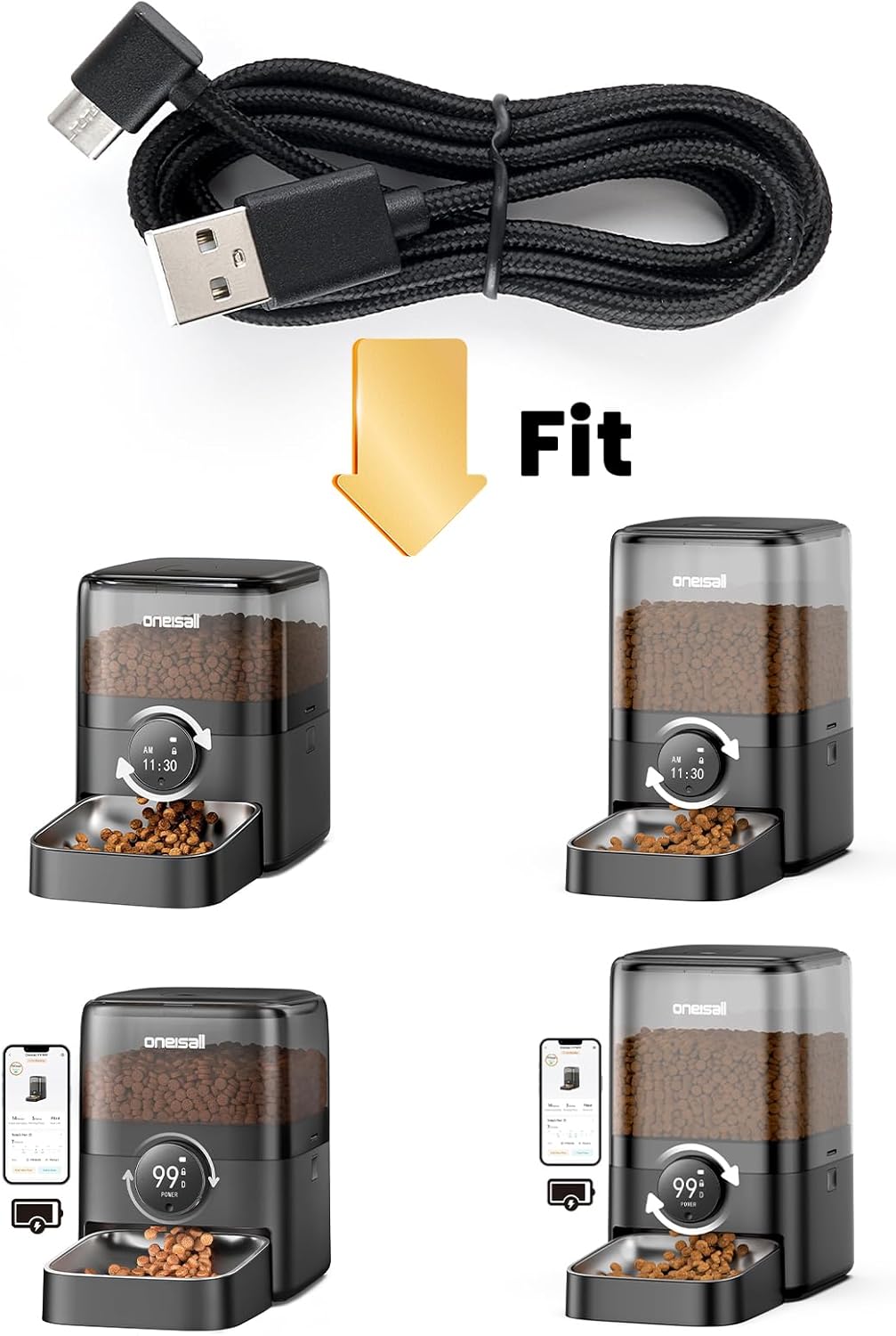 Oneisall 3L/5L Single Bowl Cat Feeder USB Type-C Cable Replacement